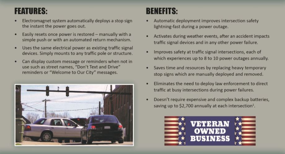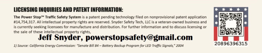 Snyder Safety Tech is searching for a partner entity to market, test, and distribute our product to government agencies. We are committed to serving the community though Traffic Safety during power outage events and need assistance bringing our developed idea to market.